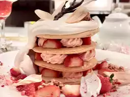 🌸"Strawberry & Sakura Mille-feuille Pancakes" that express the appearance of cherry blossoms falling