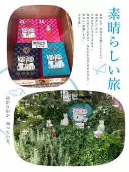 There are many characteristic cat doll decorations inside, which can be seen on the grass or next to the towering tree🐱