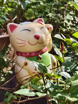 There are many cat decorations in the shrine, such as cat-shaped flower pots and pendants. The two lucky cats connected together are used to pray for a happy marriage.