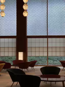 I liked the lobby bar before I checked in. The soft light shining through the lamps complements the garden view outside the screen windows, creating a very textured atmosphere. The lacquered design of the low round table has a Japanese aesthetic, but it also breaks away from tradition, which is surprisingly suitable. Most of the guests are business people. Everyone speaks in a low voice and the environment is very quiet.
