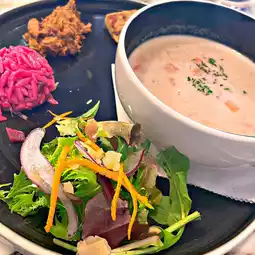 The cafe menu is extensive, with options for light and dark roasts, oat milk, and even soy milk.◎