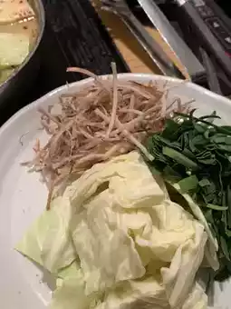 But I wanted to eat a lot, so I ordered Miso Motsunabe + 1 serving of Motsu + 1 serving of assorted vegetables (chives, cabbage, burdock) + a bowl of rice.