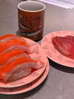 3️⃣ When the time is up, the staff will bring the sushi we ordered to our table! 4️⃣ Of course, you can get sushi right from the conveyor belt, but freshly made sushi tastes better😆