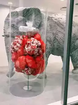 A specialty Baumkuchen gift shop. The stone-walled building collected from around the world is a landmark.