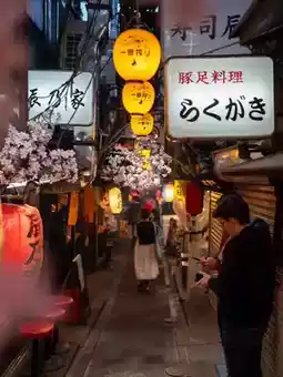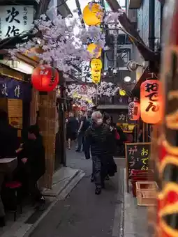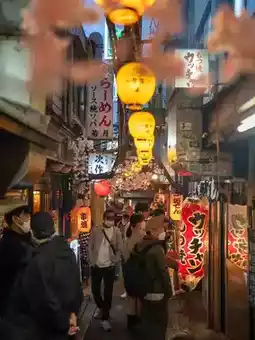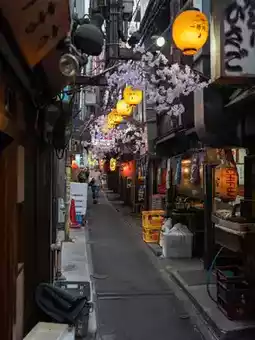 "Shinjuku's Memories Alley is a retro drinking district that strongly retains the post-war atmosphere. In spring, cherry blossom decorations adorn the eaves, creating photogenic scenes both day and night.