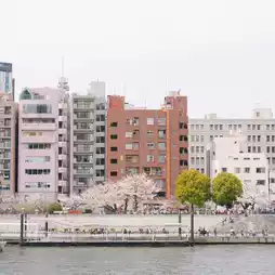There are public parks, by the sea, by the river, warm sunlight and pink cherry blossoms. It's a very lovely Tokyo.