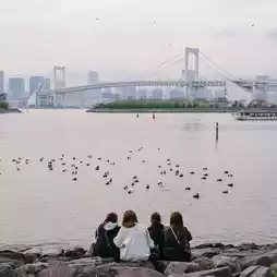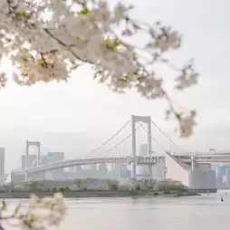 One of the places to relax and enjoy the view in the evening. Take beautiful pictures. From Odaiba Marine Park, you can see the Rainbow Bridge (Rainbow Bridge) very beautifully. At this time, cherry blossoms are in full bloom. Many Japanese people come out to have picnics and camp. It is another very romantic spot in Tokyo.