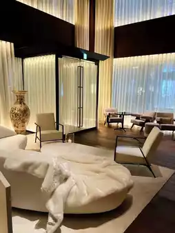 🏨Take a look at the rooms: the hotel has a total of 86 guest rooms, including 10 luxury suites, each a masterpiece crafted by masters Ian Schrager and Kengo Kuma👏. The moment you enter, the understated luxury atmosphere is fully felt, with details that amaze. Walnut wood floors paired with walls, gray and beige leather furniture complement each other, and art pieces hang on the walls, making it feel like living in a private art gallery, immersed in elegance every moment for the ultimate enjoyment!
