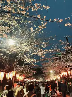 From evening, the lantern light-up creates a magical atmosphere different from the daytime. If you want to fully enjoy spring in the city center, this place is a must-visit!