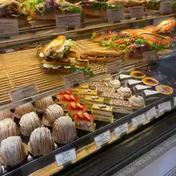 You can buy baguettes made with French wheat, traditional French pastries, cakes, and more.