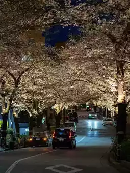 Ark Hills lets you fully enjoy nighttime cherry blossoms right in the city center. The cherry trees lined up between the urban buildings are softly illuminated, providing a soothing atmosphere amidst the sophisticated surroundings🌸. Walking leisurely through the cherry blossom tunnel while feeling the night breeze is perfect for a date. For those who want to quietly enjoy the night cherry blossoms, this is a hidden gem.