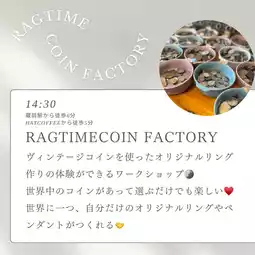 A wonderful place where you can create original rings using vintage coins from around the world. For travel lovers, just looking at the coins is exciting!! Choosing coins from your favorite or memorable countries🌎 is also fun!