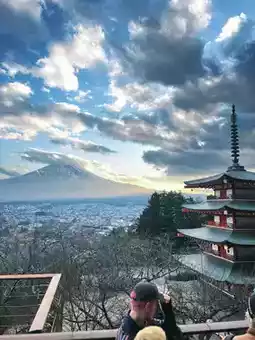 See the cherry blossoms along Lake Kawaguchiko and enjoy the stunning view of Fuji.
