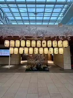 • Seasonal sakura decorations add a festive touch, even inside the airport