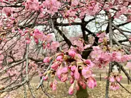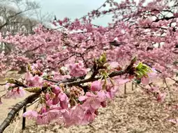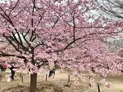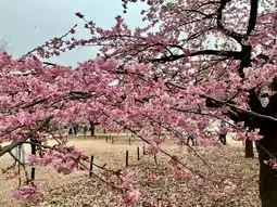 There is an area in this park with about ten Kawazu cherry trees. Although the number is small, the vibrant color and dense blossoms of the Kawazu cherry trees attract many visitors who come to admire and take photos of the cherry blossoms. Also, because these Kawazu cherry trees are relatively short, everyone competes to take beautiful photos under the fully bloomed cherry blossoms. 📷🌸💯