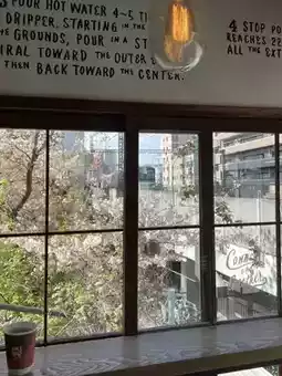 Walk to Meguro area to avoid crowds, then head up to the loft of the cozy coffee shop Onibus Coffee. The window faces a cherry blossom tree, allowing you to leisurely sip coffee while watching the blossoms, along with the scene of trains arriving at the station.