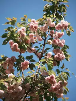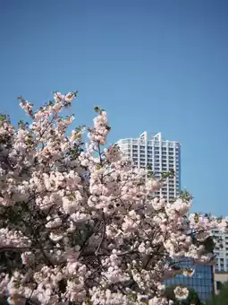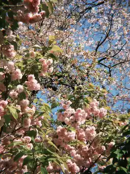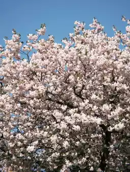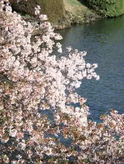 There are many cherry trees, and lots of people come with their families for cherry blossom picnics.