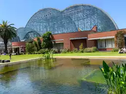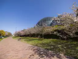 Sight: Dozens of sakura trees framing the park’s futuristic greenhouse dome 🌸🏗️