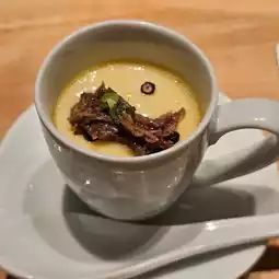 Grilled vegetables, aged tongue, Japanese Black Wagyu (lean meat, marbled)