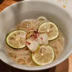 The finishing cold noodles had a refreshing sourness from the sudachi citrus, making it a superb dish.