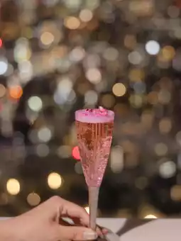 The Flower View Special Edition "Cotton Candy Shower" is a stylish drink where the cotton candy fizzes and melts when sparkling wine is poured, and fluffy roses float on topπ₯