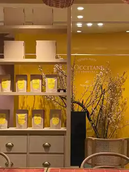 This is the L'Occitane Cafe, which I thought was a cafe with a great atmosphere while traveling in Tokyo. There were many different desserts and drinks, and they all looked delicious, so it was a place where I enjoyed choosing!