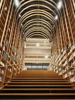 1. 10:00 AM: Enter as soon as the museum opens and explore the staircase bookshelf and gallery lounge.