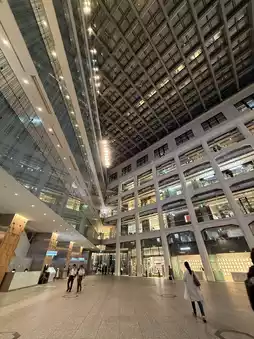 From there, I wandered through the nearby high-rise buildings. The reflections, the pace, the people—it all feels a bit cinematic at night.