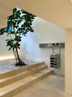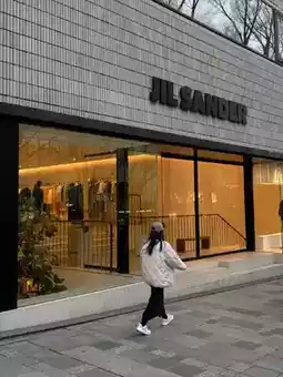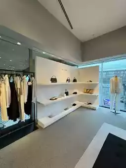 A stunning two-story pure white building! The vinyl record player combined with green plants creates a great atmosphere. The signature “logo-free” leather bags are understated yet luxurious, perfect for elevating your work wardrobe~