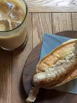 I ordered their signature menu items: a hot dog and an iced latte. To be honest, the latte was surprisingly ordinary 🤫, but the hot dog was incredible! The combination of a slightly foreign-style sausage and sour sauce was absolutely delicious 🤍. You must try it when you visit 🫢.
