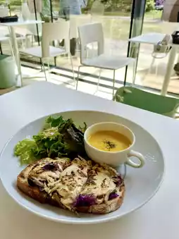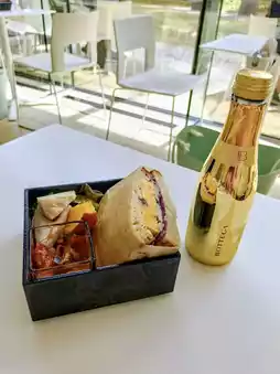 For lunch, I stopped by Café TEIEN, tucked inside the museum. We shared an open-faced tartine set and a stylish sandwich “BENTO” set—simple, fresh, and beautifully plated. The sparkling wine? A bottle of BOTTEGA gold. Hard not to smile when your drink sparkles as much as the day itself.