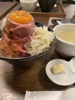 We decided to queue at ‘Roast Beef Ono’ after hesitating because the line was very long. The restaurant is underground, down the stairs. But I must say, meat lovers must not miss this place. The set we ate was A5 Wagyu beef, size M, priced around 2,200 yen, excluding drinks. The price was reasonable, but the taste was the best. We were full until dinner.