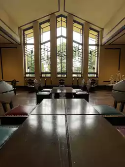 • Features: Adopts Wright’s "Prairie Style," emphasizing horizontal lines. The extensive use of wood and brick creates a warm space harmonizing with nature.