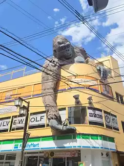 As soon as you step out of Sangenjaya Station, you'll be greeted by the whimsical sight of the "Gorilla Building" (ゴリラビル). A massive gorilla sculpture perches atop the building, carefully cradling a little girl in its hands. This quirky and adorable scene has become a must-visit landmark in Sangenjaya, with many visitors snapping photos to capture this imaginative moment.