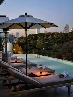 The pool hangs on the top floor of the building, with glass railings that erase the sense of boundaries. The greenery of Yoyogi Park and the silhouette of Tokyo Tower overlap on the water’s surface in the distance. 6 PM is the "magic hour," when the sunset shines through the clouds onto the pool, steam rising as you take side photos, even your hair strands glowing with golden edges; at midnight, underwater lights turn on, blue light reflecting the swaying tree shadows, as if soaking in a suspended interstellar pool. Remember to grab a free signature cocktail, lean on the poolside watching planes fly across the sky—the tipsy feeling plus the stunning view is simply divine!