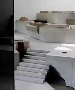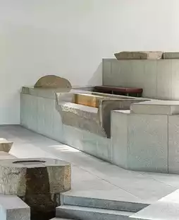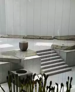 The Sogetsu Kaikan building was designed by Kenzo Tange. As the building was nearing completion, Isamu Noguchi was invited to create the interior garden. Although the creative process involved building first and then installing the artwork, the 【Paradise】 installation interacts closely with the architecture. The installation faces the resting platform of the spiral staircase, perfectly aligned with the direction of the top windows. Due to the raised ground level at the entrance, the entire installation cannot be viewed at once; it must be experienced step by step by ascending the stairs floor by floor.