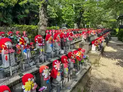 Among them, the sight of small Jizo statues called "Sentai Kosodate Jizo" standing side by side holding pinwheels was spectacular! The Jizo statues dressed in various costumes and the colorful pinwheels spinning created a somewhat mysterious atmosphere 😌