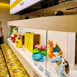 Under the concept of a "Pokémon Casual Shop," it is a smaller store with a curated selection from over 5,000 products available at the "Pokémon Center."