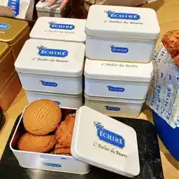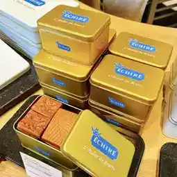The tin of cookies, Coquille et Poitevin, has two flavors. This box is really expensive, but the two types of cookies taste different and have different textures, pairing well with tea or coffee.