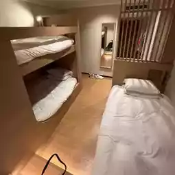 We stayed in a triple room, and by Tokyo standards, it was spacious. Each bed was generously sized, more like a super single, and the room felt freshly renovated. The interior had a beautiful wood finish, giving off a peaceful, zen-like atmosphere that really made it feel like a calm retreat from the city.
