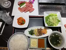 🥩 First stop: Take the skyline to Shinjuku Yakiniku Jojoen for a lunch set. There are four sets ranging from 2800¥ to 6700¥. This time we ordered the exquisite 6700¥ set, which includes Wagyu rib meat, premium beef belly, salted sauce beef tongue, drinks, and side dishes.