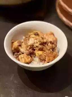 The course beautifully concludes with authentic mapo tofu and rice, providing a satisfying finish. It was a luxurious moment with excellent depth and balance of flavors.