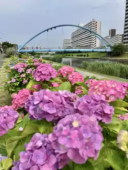 The entire Old Nakagawa Riverside Park reportedly covers more than 60,000 square meters, making it a fairly large riverside park. In spring, from March to April, it’s a great spot for cherry blossom viewing, and in early summer, from June to July, it’s the best place to enjoy hydrangeas! 💯📷😍