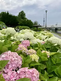 The biggest attraction of this park is the opportunity to admire and photograph hydrangeas with the Tokyo Skytree in the same frame, which draws countless local Japanese and tourists from around the world to come and enjoy the flowers, take photos, and check in. Some even specially wear kimonos to take photos with hydrangeas and the Skytree as the background, creating beautiful memories of their trip. 🇯🇵👘💐