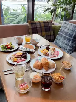 Breakfast is served buffet style at the first-floor restaurant 【SESSiON】🍽️ focusing mainly on Western dishes, with the fluffy omelets being especially delicious…! I almost went back for seconds 🥚