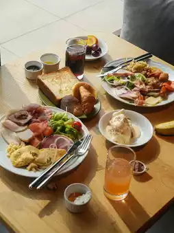 The breakfast buffet is a highlight, featuring live kitchen-prepared Eggs Benedict that are simply exquisite! The dining area, designed with a camping-inspired theme, is charming and filled with the soothing aroma of wood 🪵. The breakfast buffets at Mitsui Garden Hotel properties are always highly recommended for their delicious offerings!