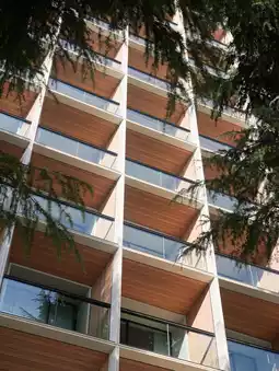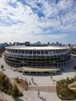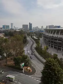 The stunning exterior features elegant wooden curves. With excellent access, it's just two train stops from Shinjuku and within walking distance from both the New National Stadium Station and Sendagaya Station!