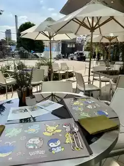 Bright blue and citrusy, this non-alcoholic spritz was as refreshing as it looked. Garnished with slices of lemon and lime, and topped with a chocolate Piplup disk, it brought the perfect splash of fun to a sunny afternoon. The playful Pokémon placemats and outdoor terrace seating made the whole experience feel like a summer holiday—even in the middle of Tokyo.