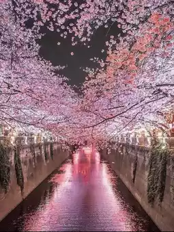 📍The night cherry blossoms at Meguro River are a love letter to spring