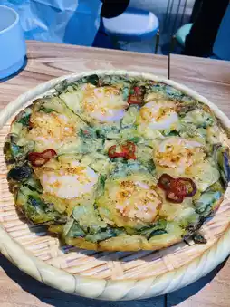 The Korean pancake (Chijimi) was crispy, and the shrimp was large and plump—highly recommended~ 🍤